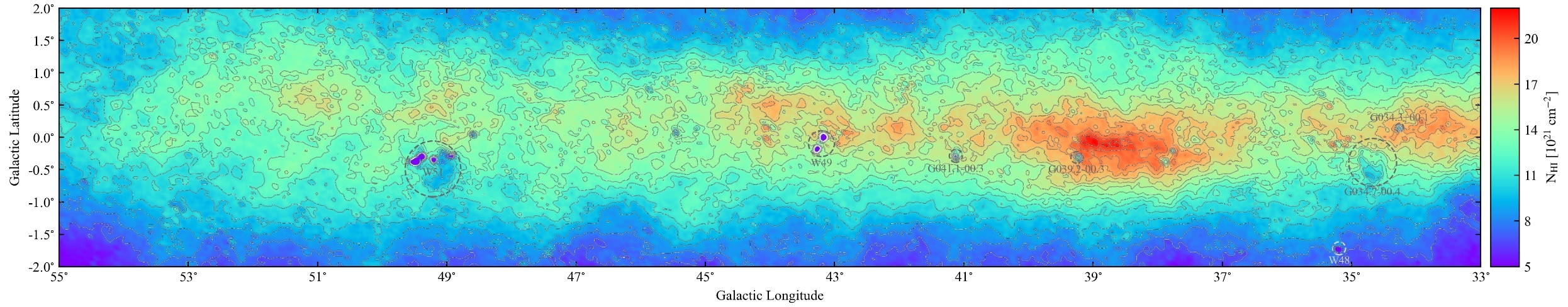 中科院国家天文台科研团队利用中国天眼FAST对银河系逐点巡测、搜寻脉冲星的同时,同步记录了星际气体的谱线数据,并于近期完成了对银河系一个部分的观测,处理了约4.4万条无线电谱线数据,获得了国际上最高灵敏度和清晰度的银河系内氢原子气体的分布结构和电离气体的弥漫特征。该科研团队利用脉冲星探测了银河系内迄今为止最大范围的磁场特征,并利用中国天眼FAST扫描了银河系的一块区域,新证认出两例超新星爆炸的遗迹。这些研究从多个角度揭示了在星际空间中隐藏的恒星从诞生到消亡的奥秘,对理解银河系中的天体诞生和星际空间的物质循环具有重要意义。