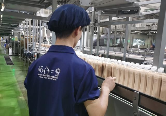 康师傅工厂员工穿着以饮料瓶废料回收再生材料的工服