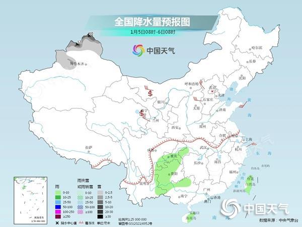 降水方面,昨天我国雨雪主要出现在西南地区和新疆北部等地,监测显示,新疆阿勒泰、塔城及甘肃东南部等地出现小到中雪。