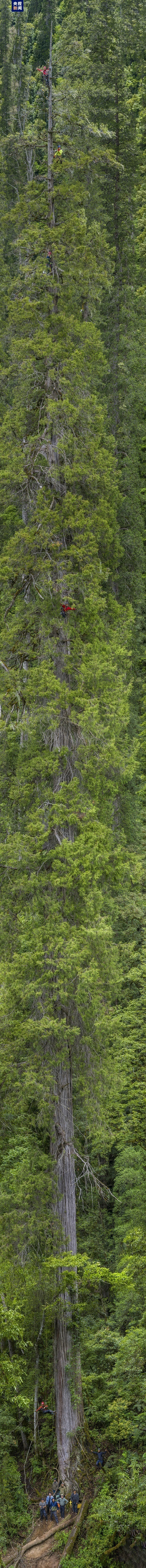 科考队员介绍,此前测量为102.3米的西藏柏木,经现场采集进行形态和文献对比,鉴定为藏南柏木(Cupressus austrotibetica),其历史高度(包含主干枯枝)为102.3米,相当于36层楼高。活体高度(从树干基部至存活枝顶部)为101.2米;按目前已有的测量记录,其活体高度101.2米依然为全球第二高树种、亚洲最高树。