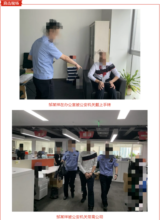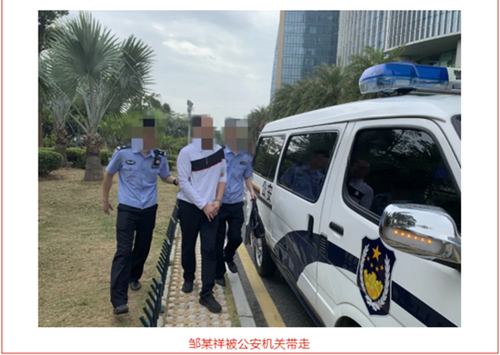 11月3日,晋江市公安局以涉嫌非国家工作人员受贿罪,在厦门安踏营运大楼内,依法将嫌疑人邹某祥刑事拘留。