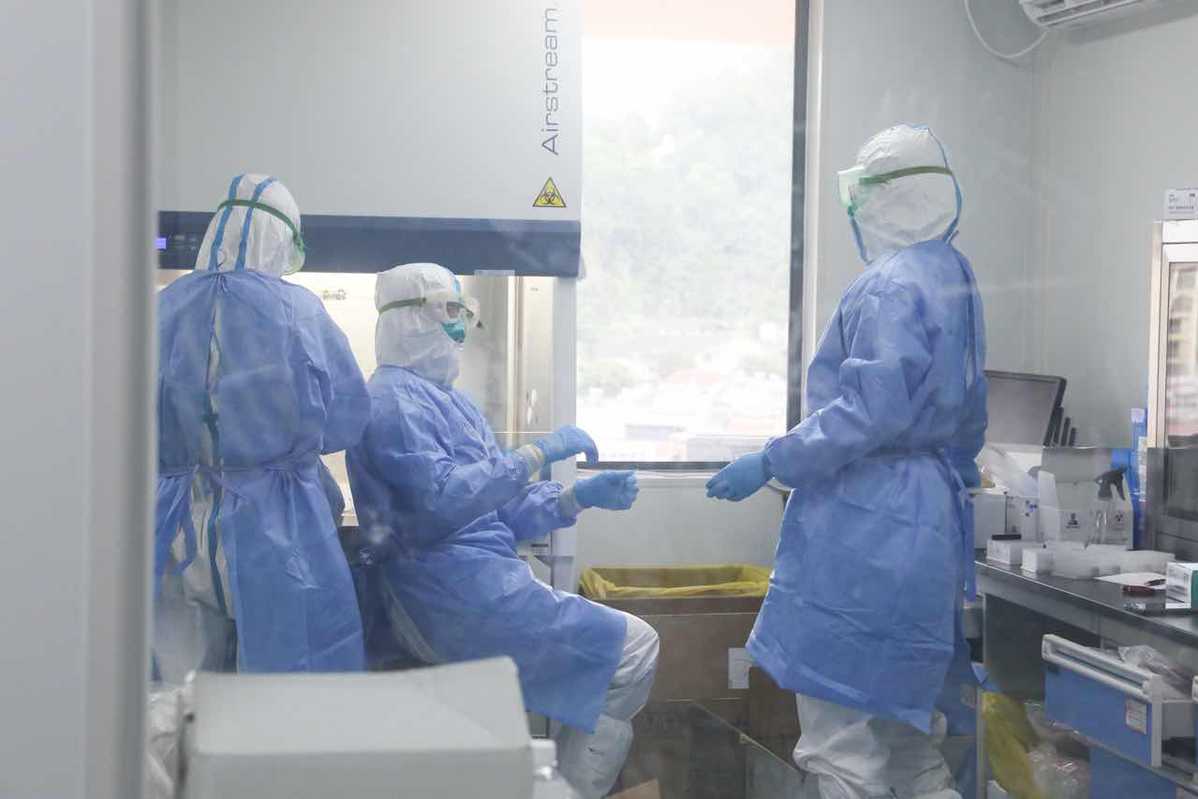 11月14日,瑞丽市疾控中心,工作人员在PCR实验室中开展核酸检测工作。(中国日报记者 武晓慧 摄)