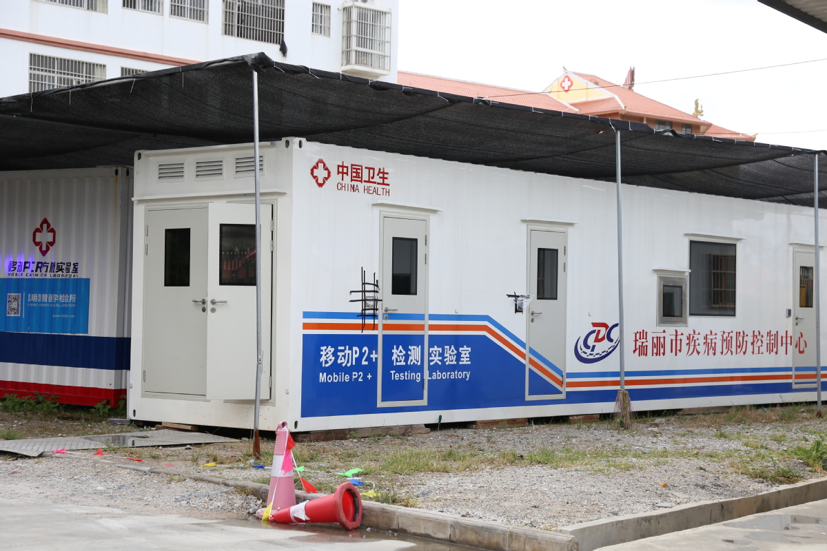 11月14日,瑞丽市疾控中心,云南省援助的移动P2+核酸检测车。(中国日报记者 武晓慧 摄)