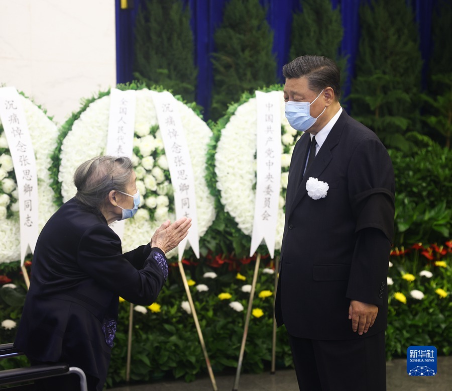 6月21日,张思卿同志遗体在北京八宝山革命公墓火化。习近平、栗战书、汪洋等前往八宝山送别。这是习近平向张思卿亲属表示深切慰问。新华社记者 鞠鹏 摄